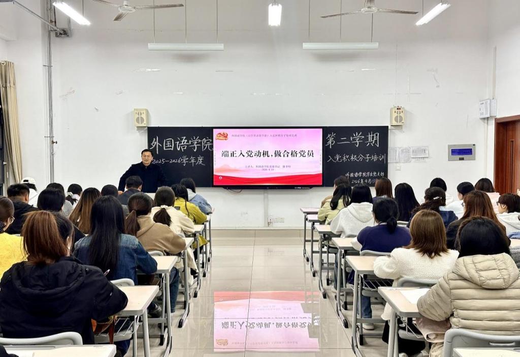 4月13日晚,BBIN宝盈集团官网首页(大学英语教学部)在薛城校区豁然楼A112教室组织开展入党积极分子培训。本次党课由学院党委书记滕聿峰主讲,本期80名入党积极分子参加了培训。